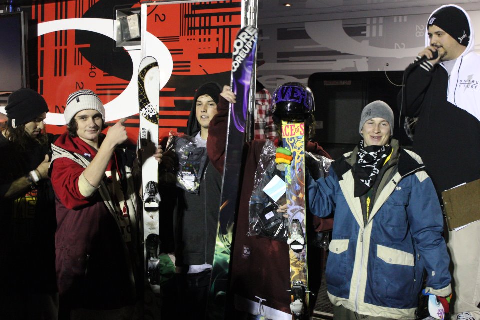 ELEVENT/COREUPT/OAKLEY/NORDICA/BUDLITE/REDBULL. Also, a special thanks to the OFR Team and René Caza for the crazy set up .