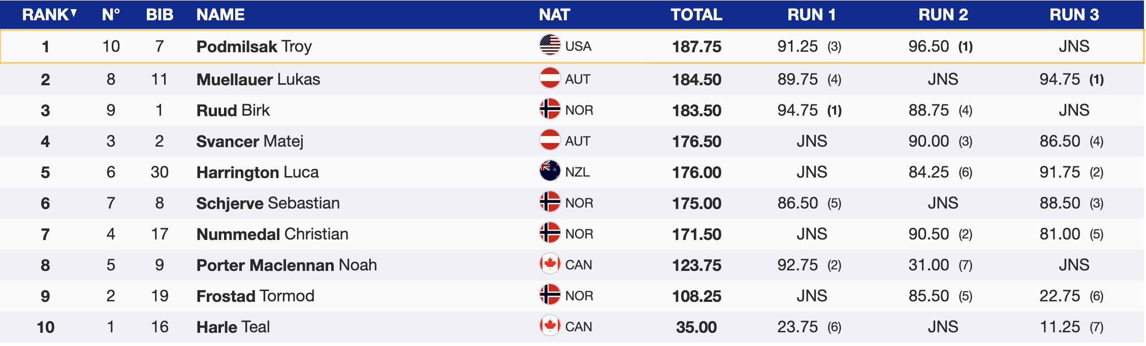 Rather than try and turn a billion spins into a paragraph, it seemed to make more sense to list the best tricks here and let you try and find a replay. The conditions were less than ideal but, especially given that, the level was ridiculous. Christian Nummedal and Tormod Frostad were the most stylish and deserved better scores in this viewer's eyes. Ultimately the podium went to the spins and, to be fair, some huge amplitude. Lukas Muellauer deserves some props for holding tail forever on a switch dub 2160 too.