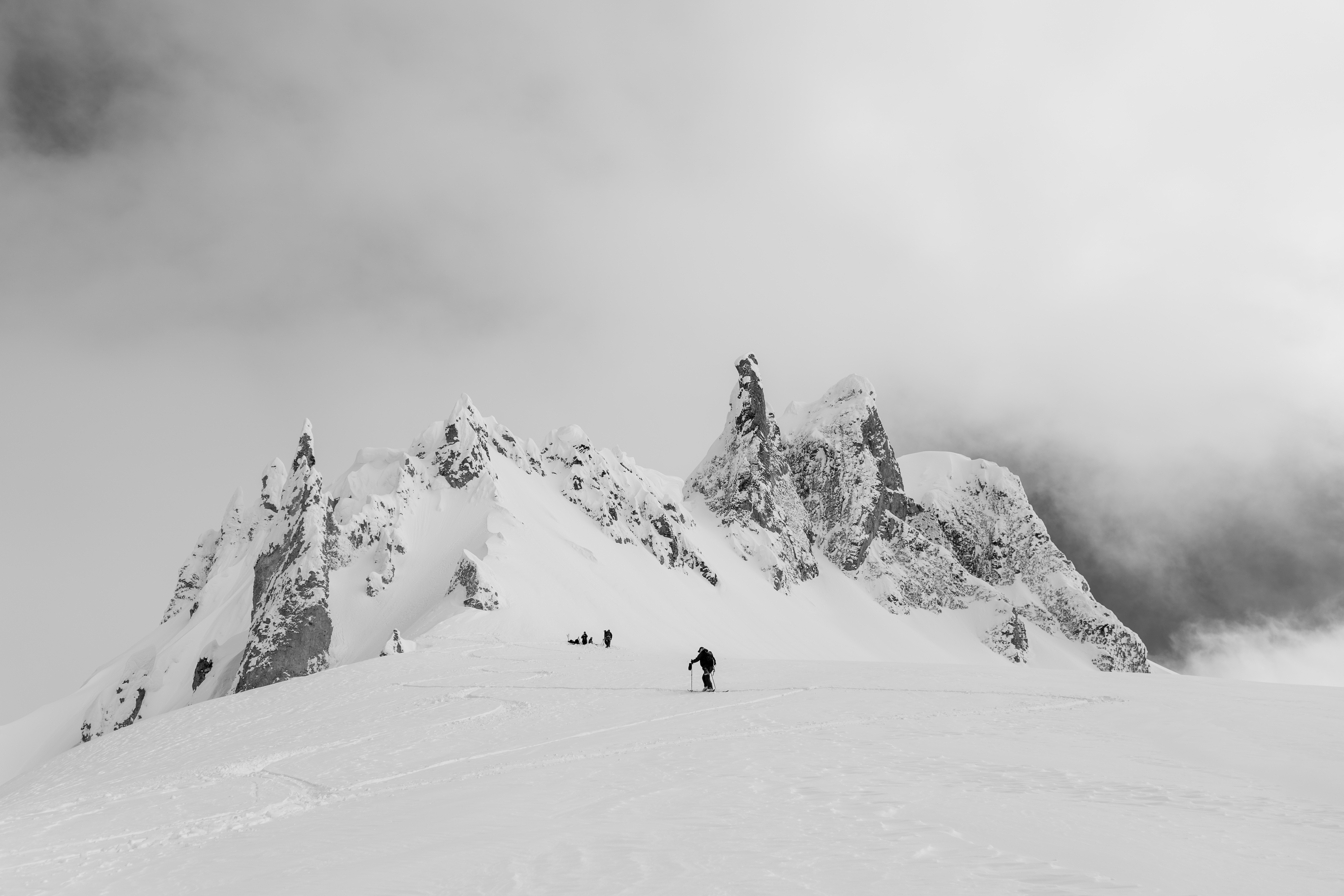 Dendrite dropped their first ski film Out of The Shadows back in 2010, and they took home Best Big Mountain Film at IF3 that same year. Nicolas Teichrob and Athan Merrick had been in and out of the ski industry since Out of The Shadows, but their creative background is what drew Kye to working with them to put together what he had in mind. “On top of that, I had a good friend of mine that was beginning a drone filming business,” Kye told us, “We soon figured out how to capture something that we had never seen before and this motivated me to start the first year of filming.” Kye joined forces with Chris Flynn (drone) and Guillaume Tessier on some trips during the first year of shooting, and while this was all happening he started to put together creative ideas with Nic from Dendrite. “We came up with 'Numinous', a cinematic backcountry skiing film all shot in British Columbia with visual location storytelling throughout,” Kye explained.