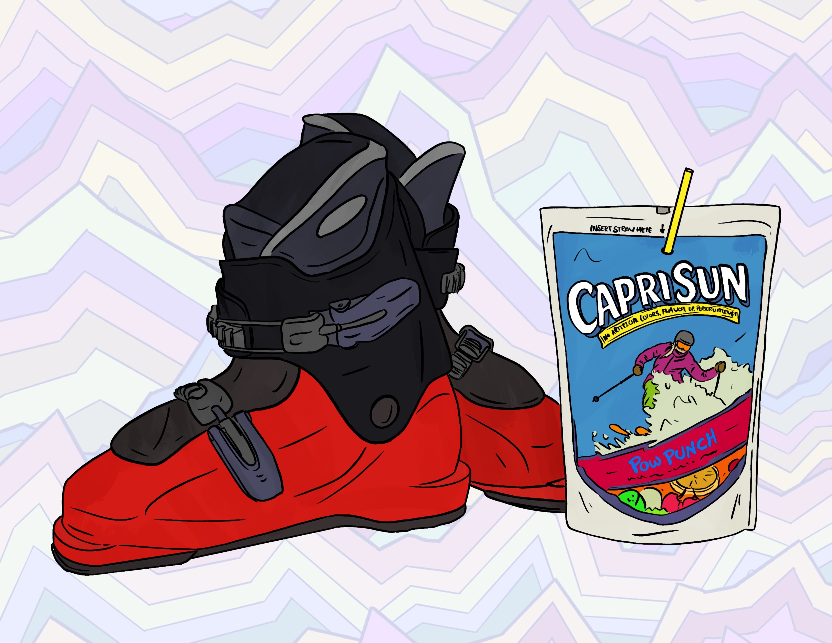 I've drawn a lot of ski scenes over the last few years, so I figured I might as well do some youthful ones as well.