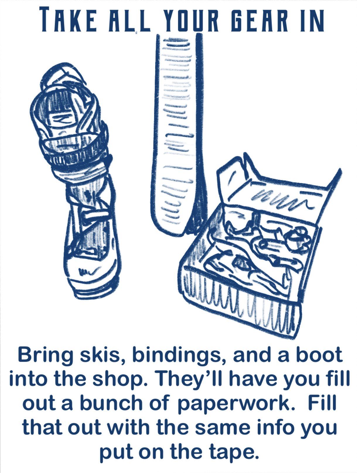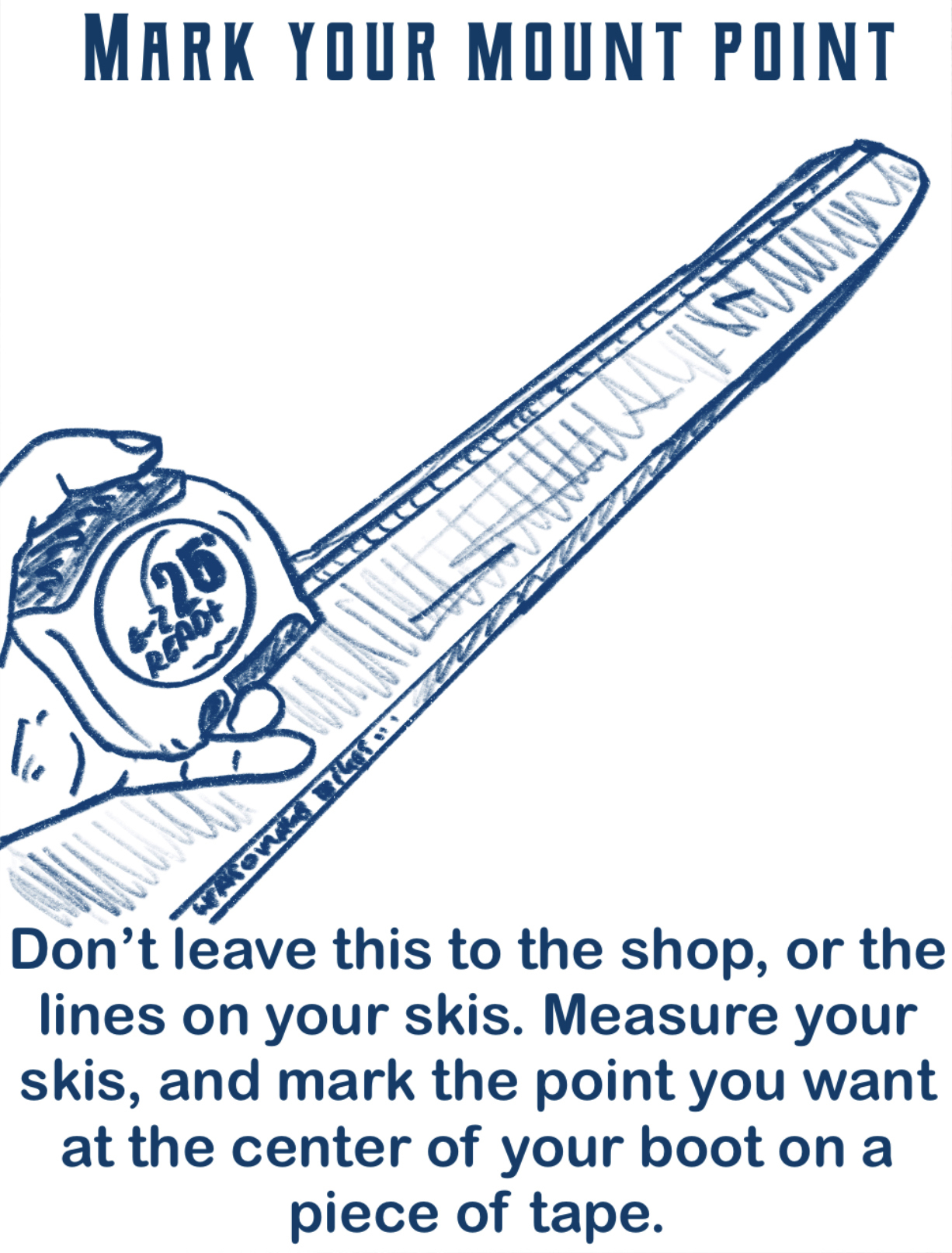 'Tis the season to take your new skis in to the shop, drop them off for a mount, and come back to find them mounted backwards, mounted crooked, mounted for the wrong binding, dimpled, or something equally as deflating. I've written a couple articles on how to make sure this doesn't happen to you (here and here) but I figured a comic might stick better!
