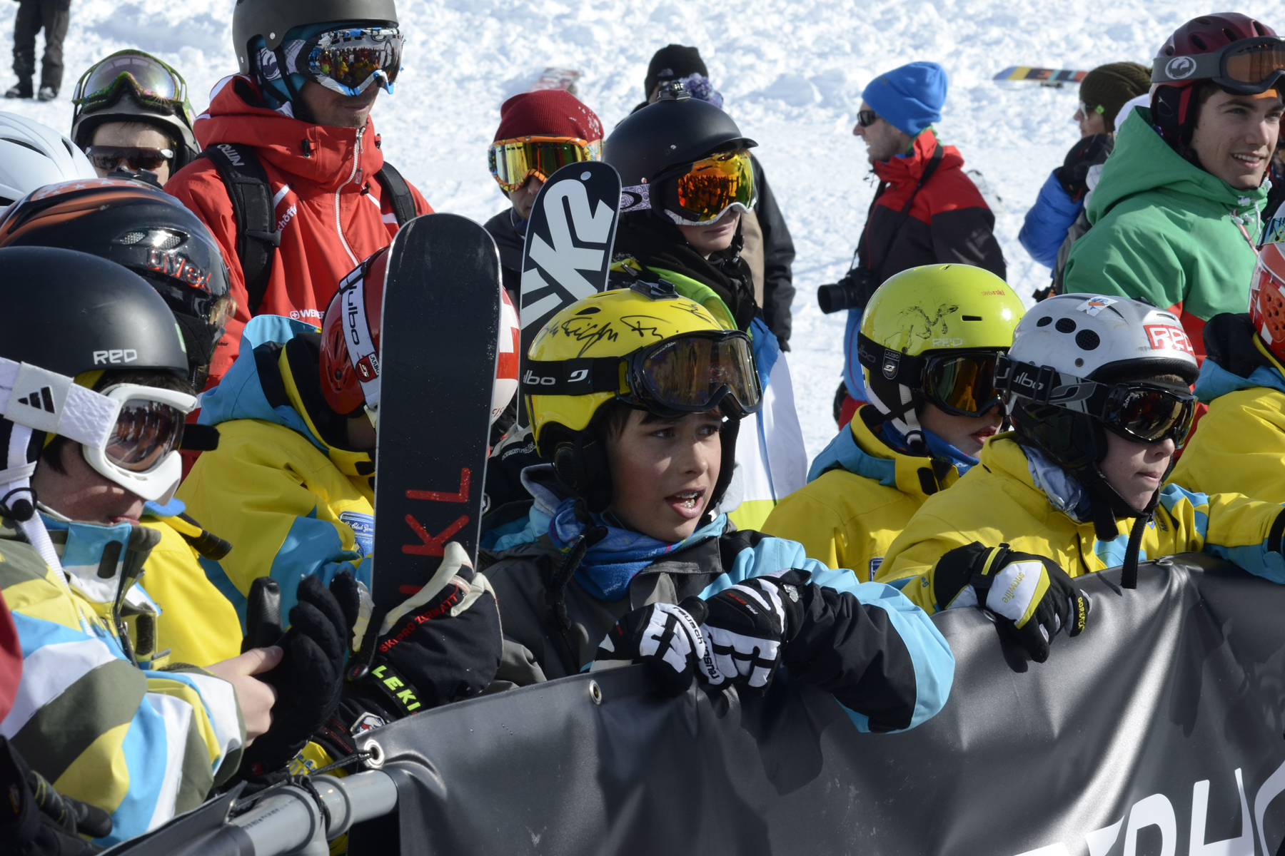 They may be wearing race gear, but they know good skiing when they see it. European groms enjoying the show in Verbier.