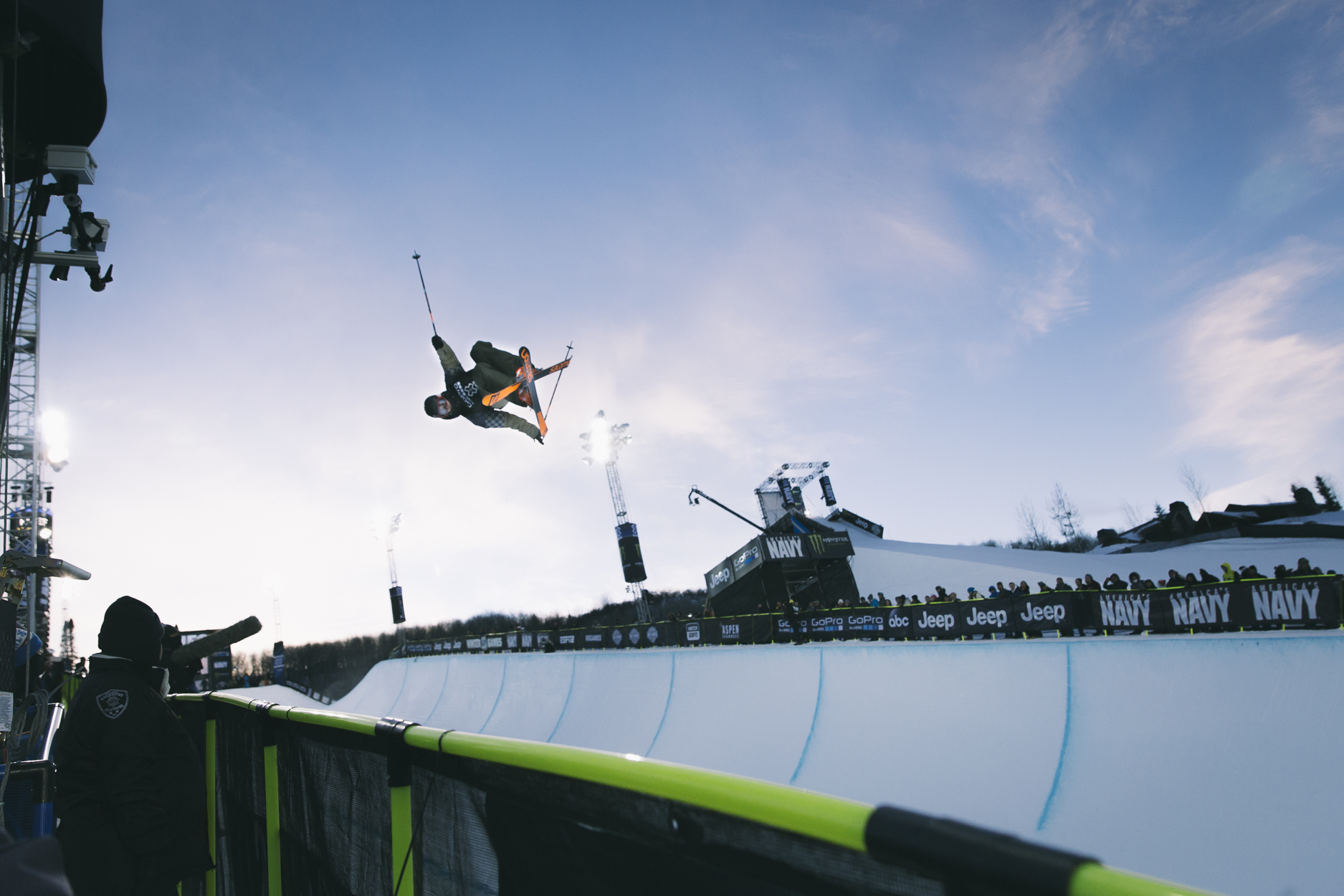 I'm still going to criticize when I see fit because that's my job as a journalist/bitter comp hater, but their job is hard. Back to the action, Benoit Valentin went pretty big, close to 15ft on average and put down a solid run. He's stoked as fuck but scores a 78.0 for third. As a sidenote, someone brought vuvuzelas in to the crowd bringing back nightmares from the Football (Soccer) World Cup in South Africa. I hope they suffer. Aaron Blunck threw a crazy switch to switch dub but lacked amplitude and scored low as a consequence. Justin Dorey threw a ridiculous switch down the pipe flatspin to switch (I think) which looked hard as fuck, if a bit messy. I'm not a good enough pipe skier to really understand it but he went third. Gus put down a pretty smooth run to go straight in to first place, cue puppy pictures and some X-Games drivel. Noah Bowman threw down a super tech run but scores a 77.6. Not too sure about that one, could see it being controversial. Kevin ALLEZ ALLEZ SPORTS Rolland dropped next and to be fair, killed it (despite some kind of weird crossed safety grab) to go second. Last to drop, David Wise stumbled a couple of times on landings but landed some big tricks for an 83.0.