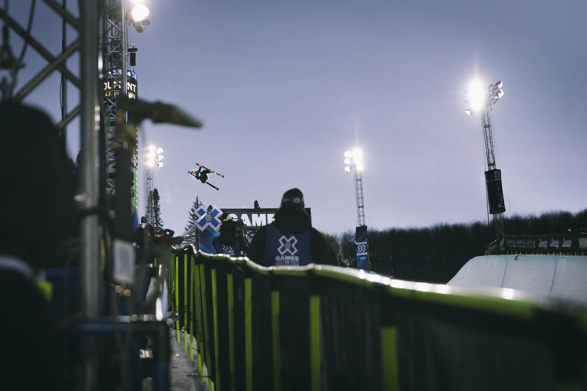 Simon D'Artois started things off with a big run out off the bat, just like his countryman Alex Bellemare in Slopestyle, and scored a similar 85.0. Byron Wells got super technical with 3 straight switch hits followed by back to back dub 12s for an 81.33. As pipe comps go, this is pretty interesting so far! After some confusion from the commentators over who drops next, it turns out to be Lyman Currier who goes huge but missed a couple of grabs. I actually spoke to Mike Atkinson, the head judge at X, on the phone earlier and he gave me an insight in to how the judging goes down. Long story short, they have so little time to score that under the current system, any imperfections almost by definition have to be heavily marked down. Full article coming soon. He also sent me this quick pic from the booth, to show me their view of things...