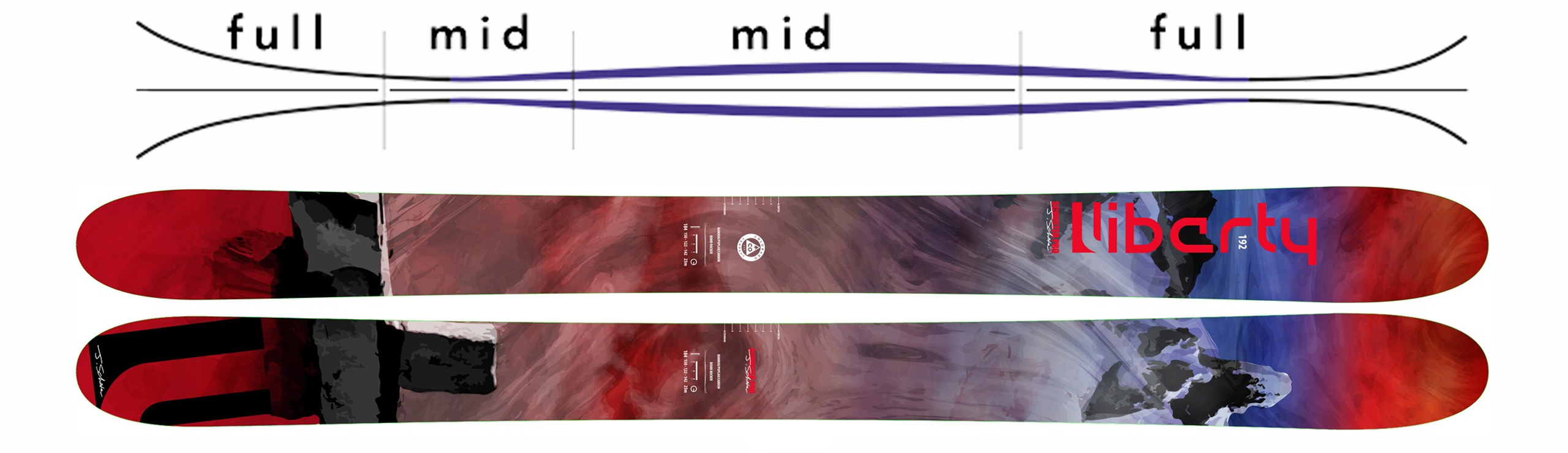 The newest edition of Joe Schuster’s personal powder ride. It’s got all the best stuff: carbon fiber, bamboo, super fast base, camber, rocker, and a little dash of Joe. Made for the biggest, deepest, best days.