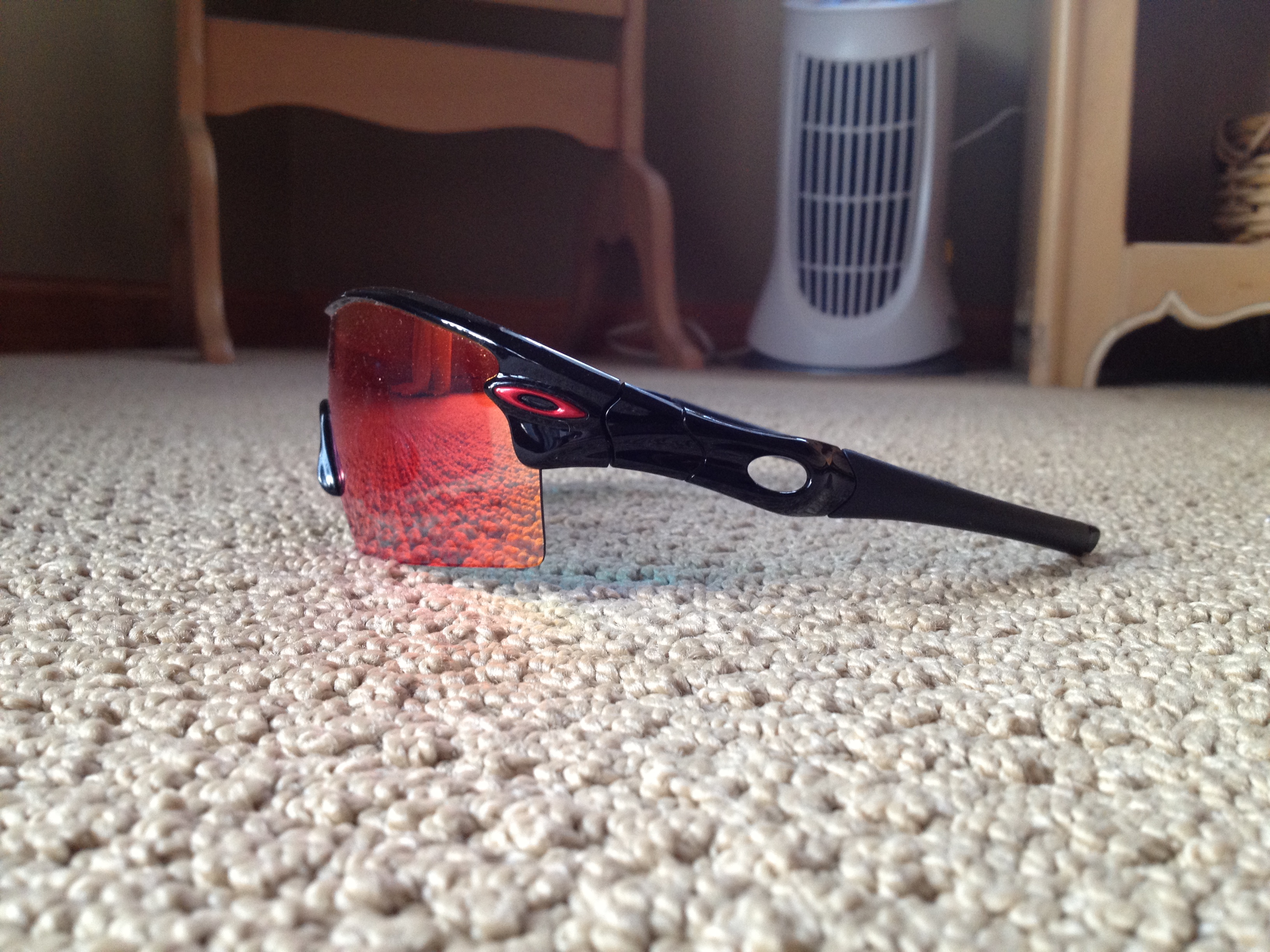 I have 2 pair of oakley sunglasses (sport). pair of black XL blades which are brand new obly worn about 2 times.. 10/10 condition.. next i have a pair of blue M frames. the rubber piece on the ears have a little rip in them.. they are 7/10 condition