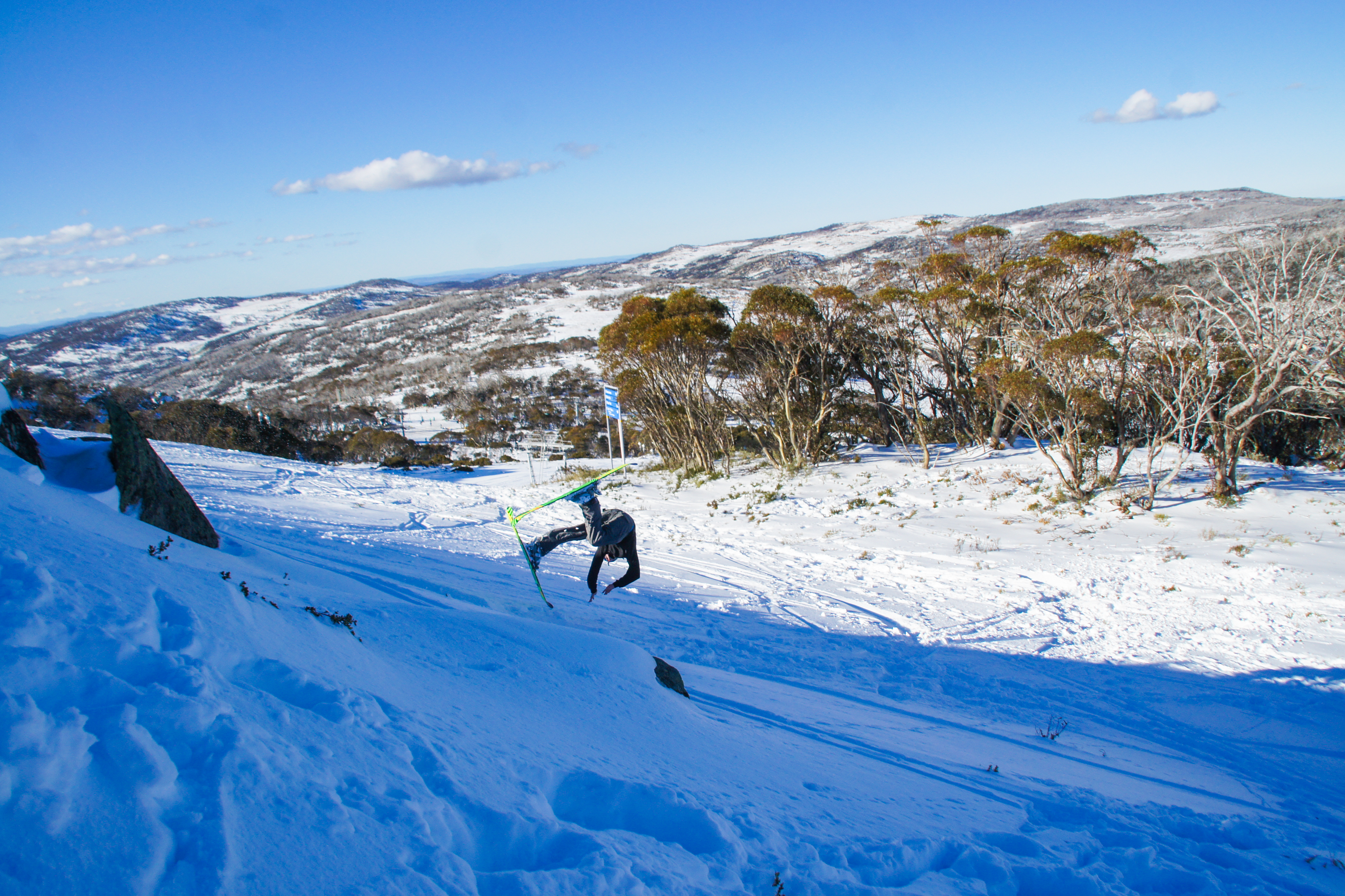 A lot of people, when trying them for the first time on snow, just throw their head back. Good way to land upside down.