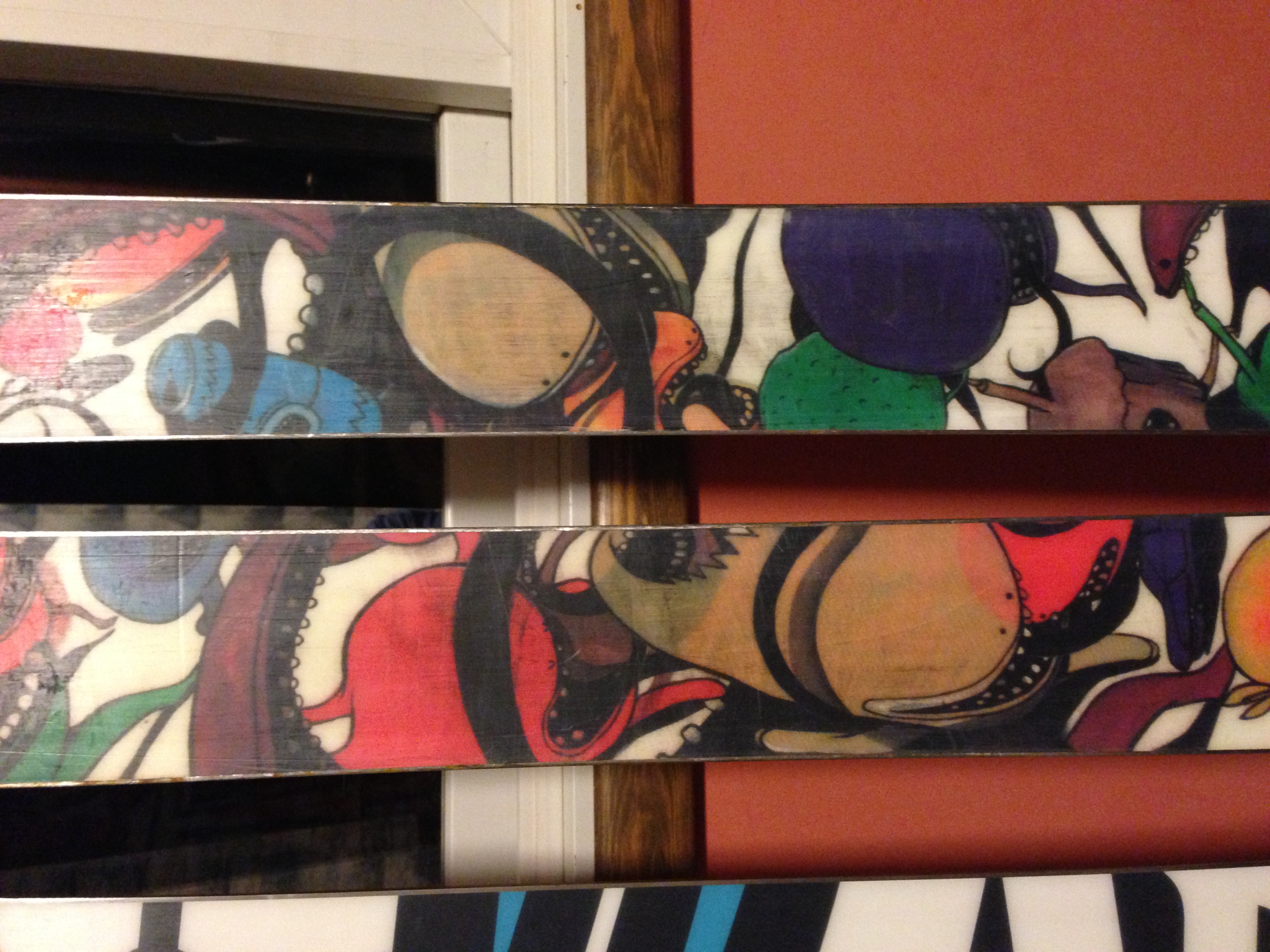 The Rossignol Scimitar 181 have been skied on 30 times tops no core shots, no broken edges, couple scratches nothing worth P-texing, slight dent on tip from catching jumping onto a rail. if you gave em a base grind and tune up they would look brand new! Retail $500