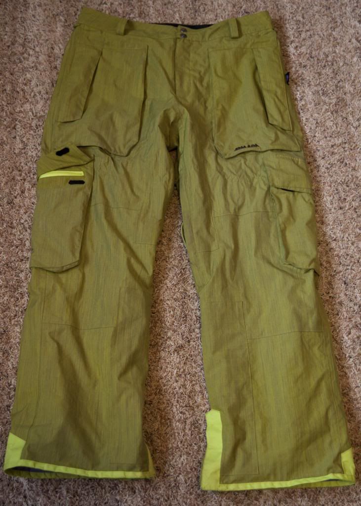 Also for sale are some size XL green Armada pants from 2 years ago. These are also 10k waterproofing. Great condition with a slight stain on the back of the left leg but can't be seen really when worn. The bottom of the pants have some wears but still holding up really well. 32" inseam with a 43" outseam. They fit like baggy Oakley XL pants. Looking for $60 shipped OBO.
