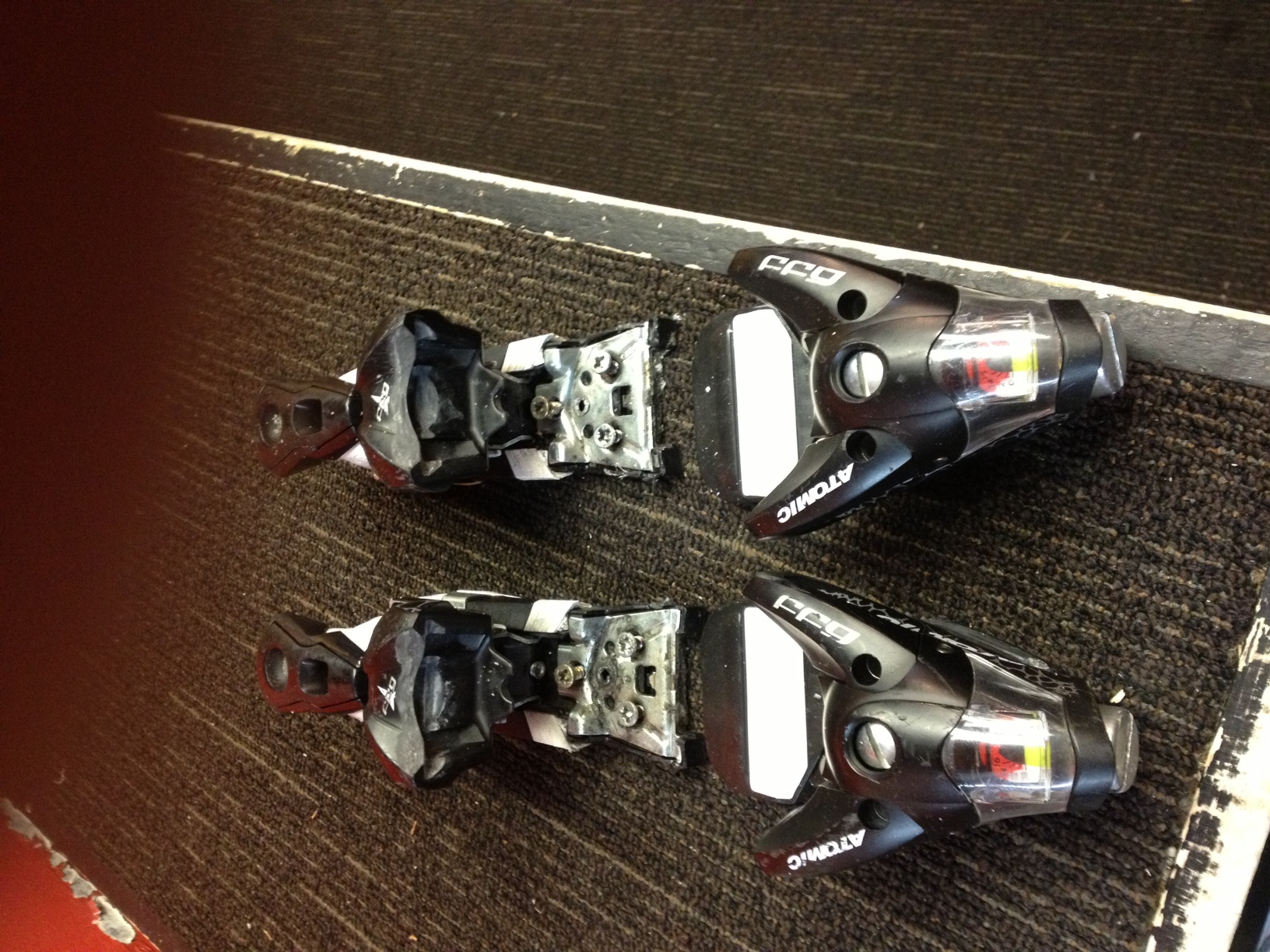 Have a pair of Atomic FFG 16 bindings from 2 years ago still in good shape. The screw hole on one of the brakes is stripped, but using a longer screw keeps it good. Generic pic of the bindings below, I will post pics of the actual bindings tomorrow. They are at the shop I work at. 100 bucks shipped to your door is what I am asking.