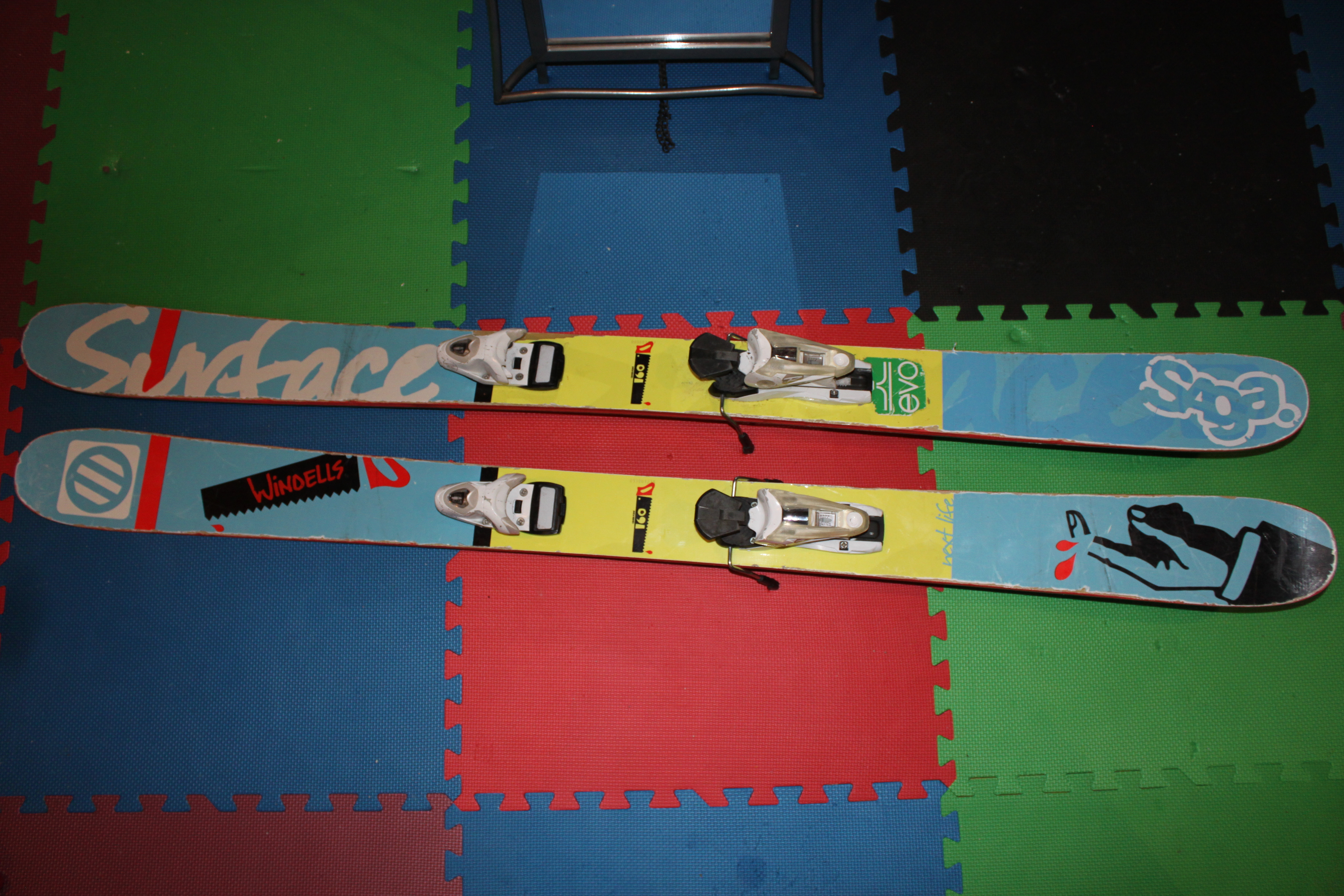 next are a pair of 160 surface next times! these come with rosignol bindings FREE!!!. A super dope ski for sure, would be keeping these these if they were not to short. they have had some p tex on the bottom, and some topsheet damage, but do not effect how they ride. im asking 150. 7/10 condition due to looking a little banged up (they ride fine)