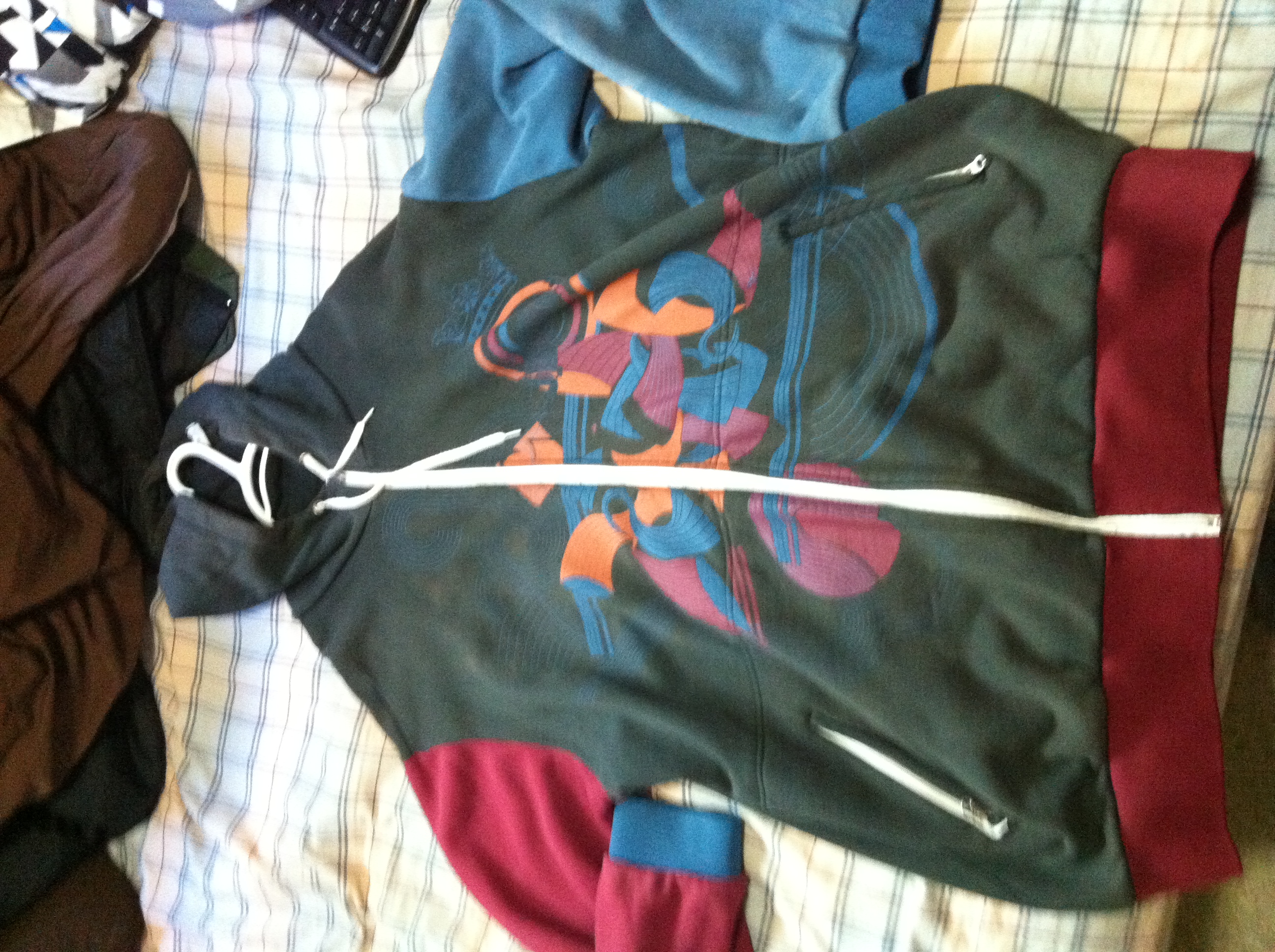 Just some dirt on cuffs that will come off if washed and the zipper pull broke off but it works, just needs a zip tie or something