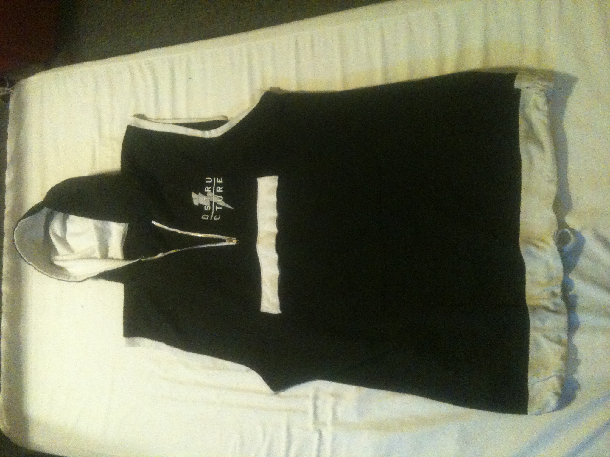 I have a sick d-structure vest size XXXXL (34inches) , 8/10 because it have ONE rail stain on the bottom of the hoodie(PICTURED) i'll start at $50 shipped O.B.O or trade !
