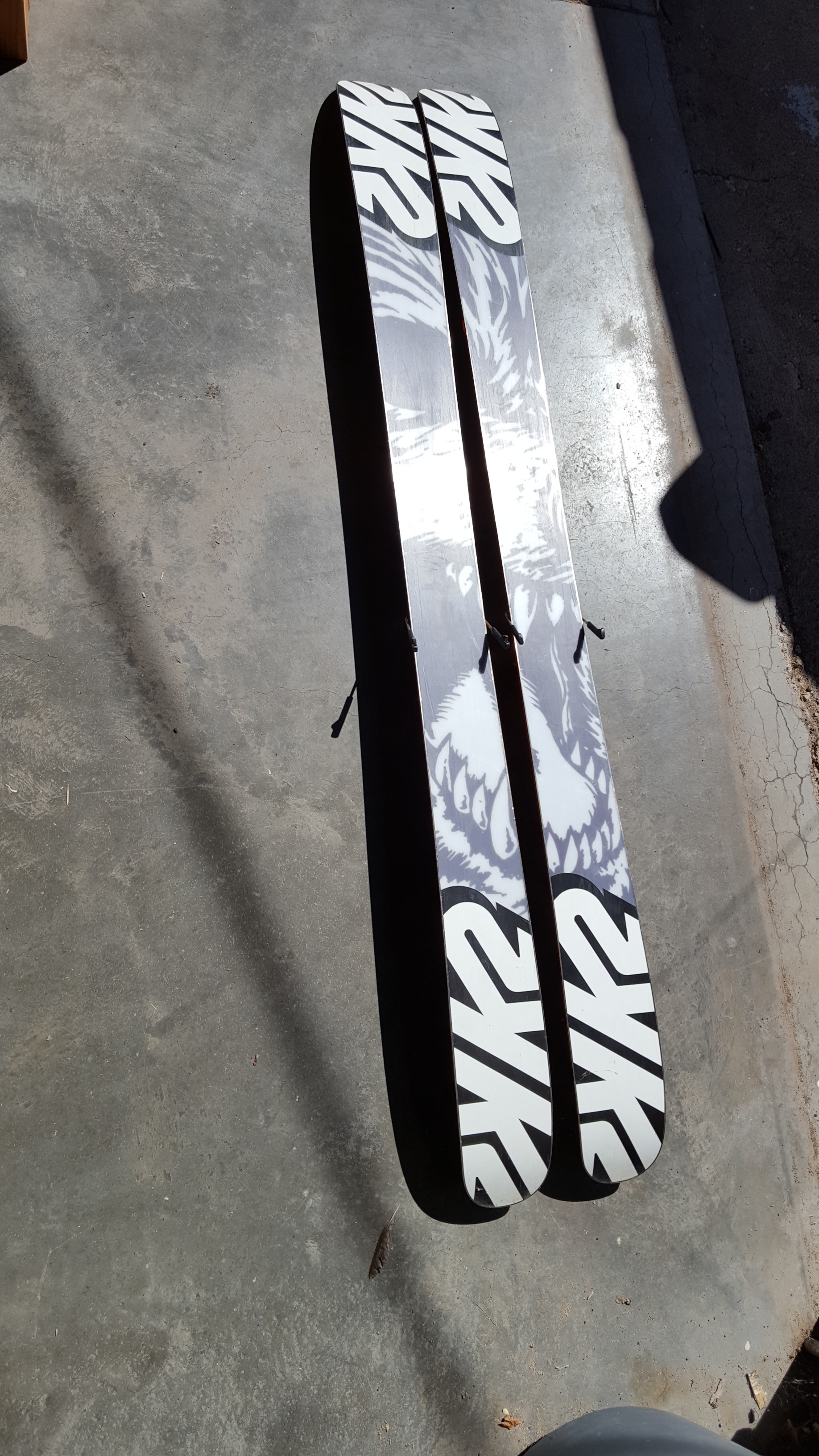 First up is a pair of K2 Shreditor 120 skis, size 189 (bindings not included). Mounted once with FKS bindings BSL 316 mm, 2.5 cm from center and used for part of last season. Minimal sidewall damage. Looking to get $300 shipped