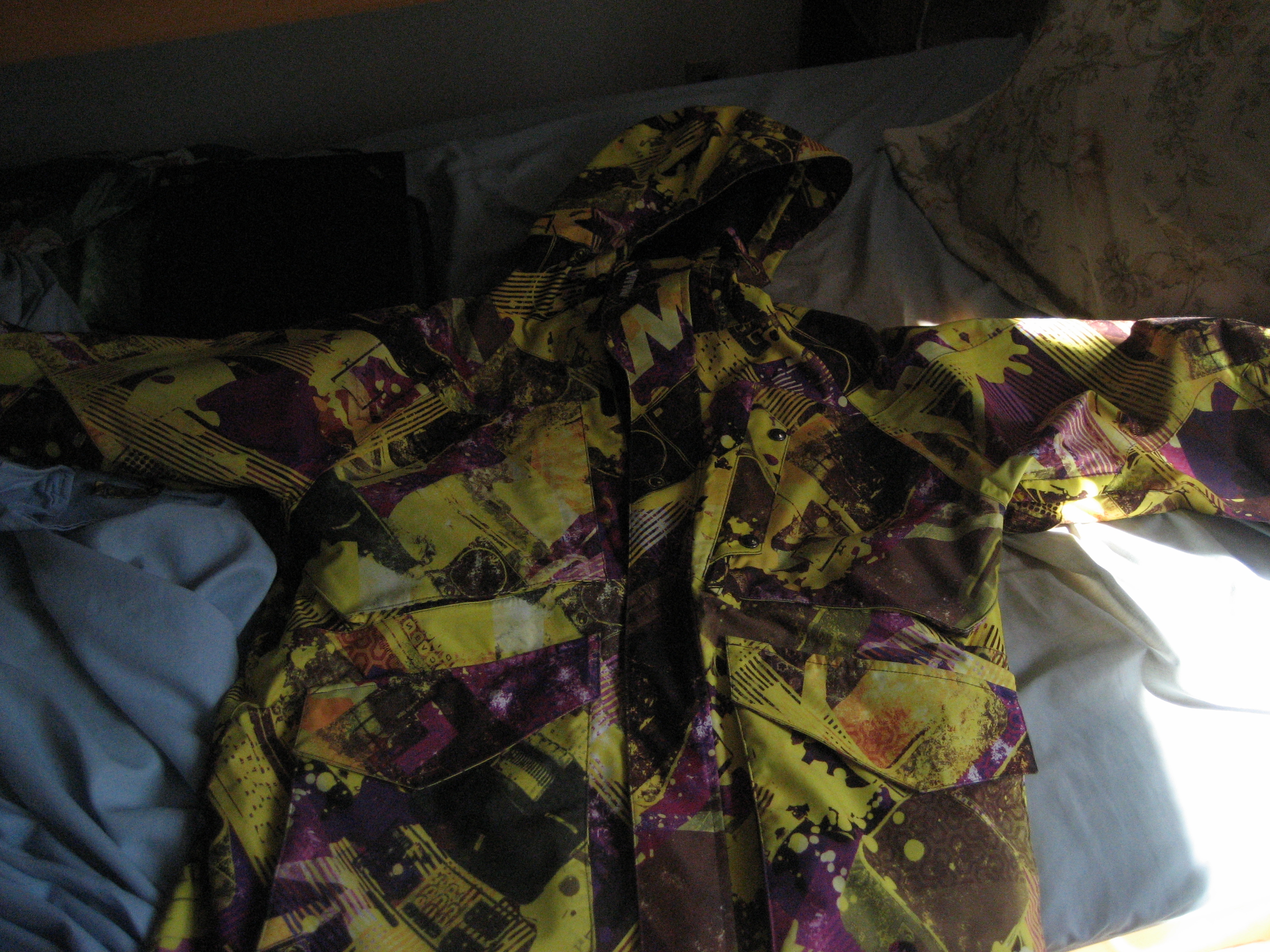 First up, a medium Armada Spectrum. Solid jacket, just too small for me now. This will be good for the smaller NSers out there. Zipper is 31in and it's rated 15k/10k. Some pilling on the wrist gaskets and some fading on the cuffs are the only issues. So 7/10 for 2-3 years of use. $100.