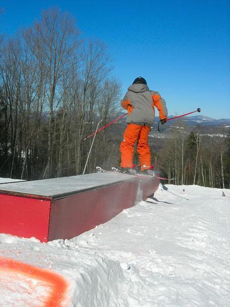 first rail/box: ski blades this november on a freshpark rail in my backyard and i did a 270 off it too.