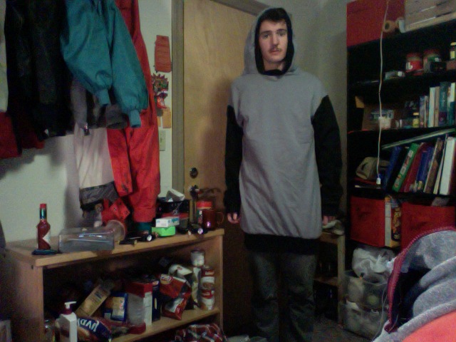 Custom Sweatshirt! 35inches tall. Nice soft fabric. big hood! pretty narrow. Good for wandering campus! $ 40