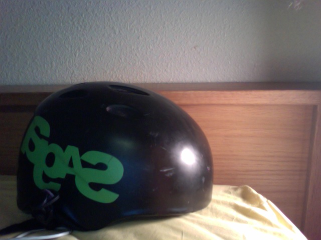 Red HIFI audio with skullcandy skull crushers Headphones no longer have working subs and I believe there is damage to the cord because the music sometimes cuts out. The helmet is fairly beat up but I still use it. $20
