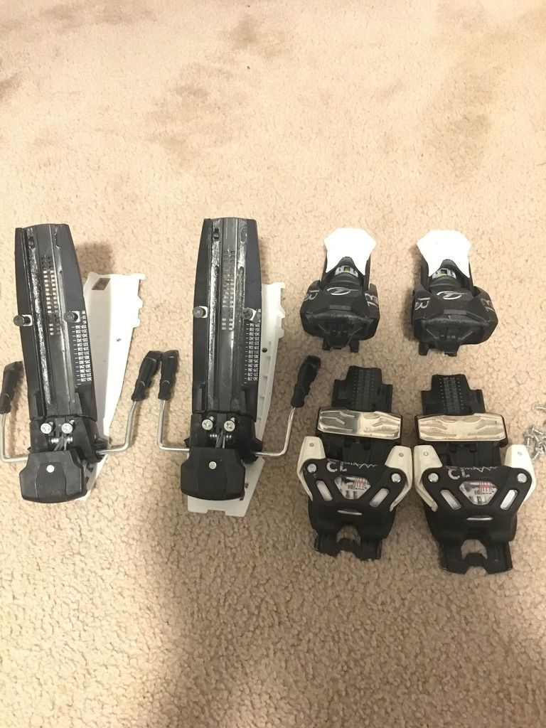 These demo bindings run on a metal track to reduce stand height and are not excessively heavy or bulky. Brakes are 115mm and clear 117mm JJs no problem.