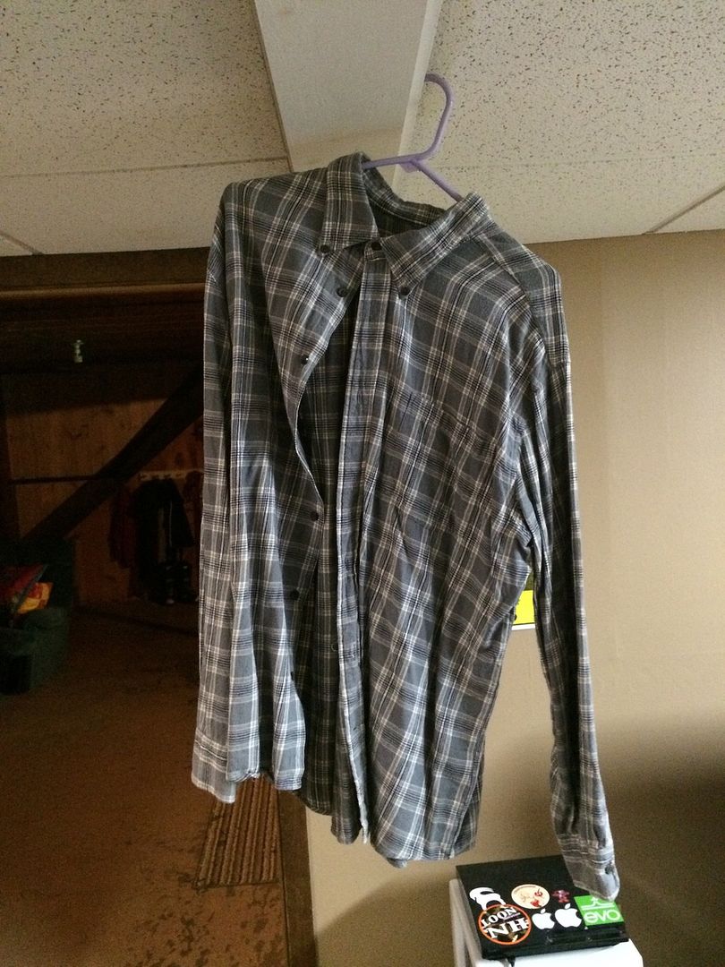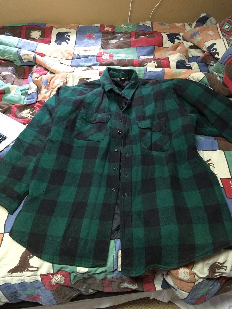 first up an XL flannel, in 8/10 with a few minor stains, worn to school quite a bit, $11